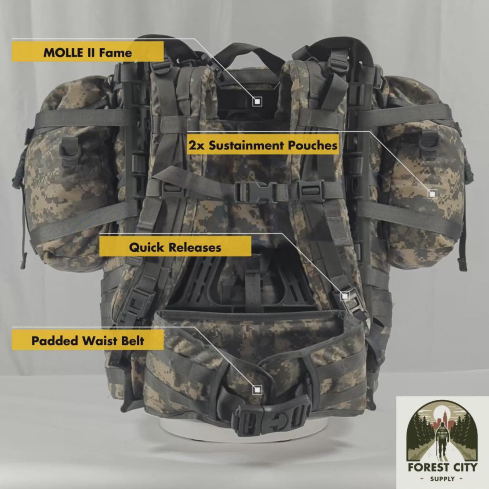- Complete Gear Package: This pack ships fully assembled and ready for action, featuring the MOLLE II frame, enhanced shoulder harness, molded waist belt, and 2 sustainment pouches.