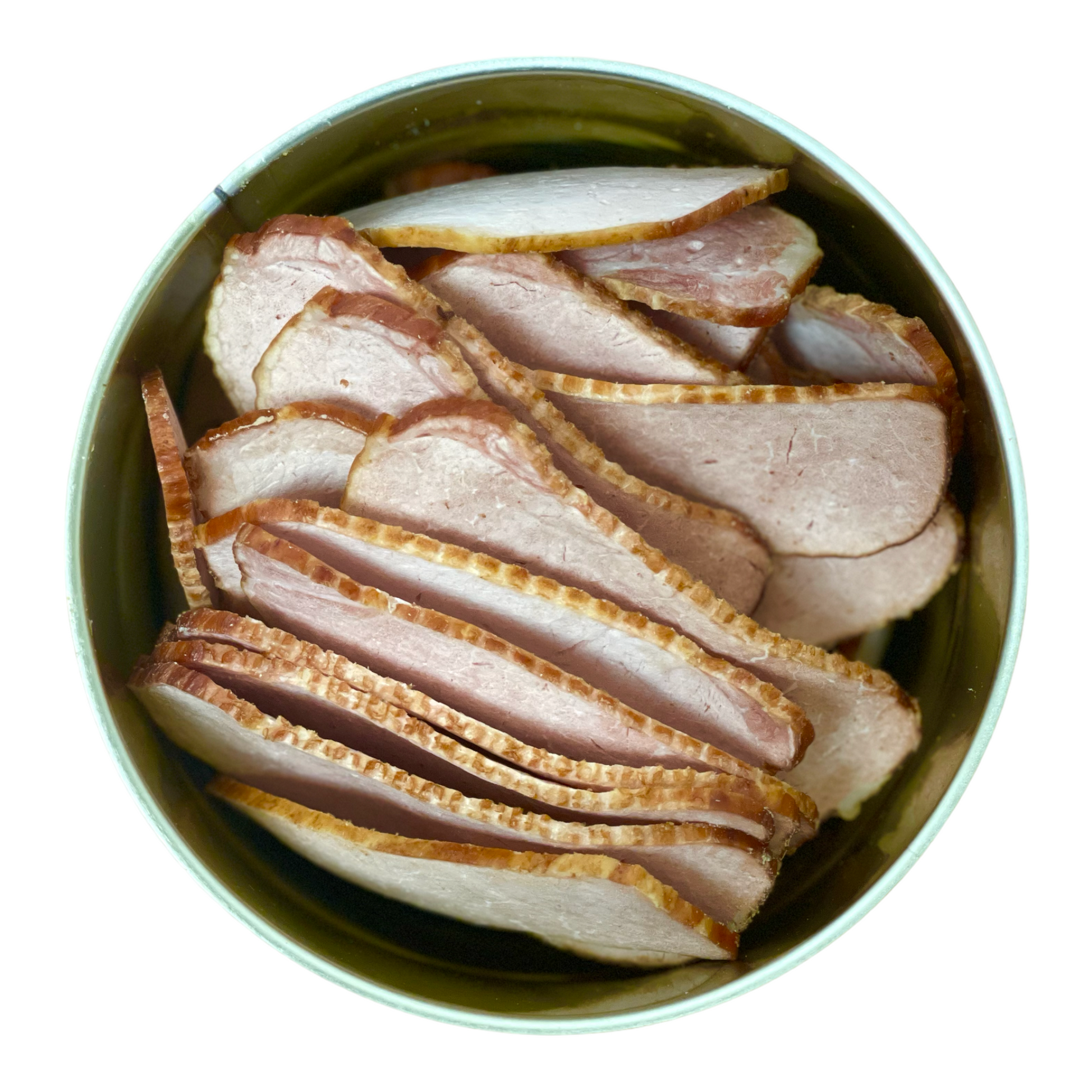 This Canadian Bacon is made of boneless loin, an elongated muscle with little fat. Cured and smoked to perfection, so it translates into delicious Canadian Bacon that is guaranteed to please you and your family. We opened several cans to try these out before we committed to such a large quantity, and this Canadian Bacon is absolutely amazing: tender, juicy, cured and smoked, very tasty and as fresh as the day they were flash frozen and dehydrated!
