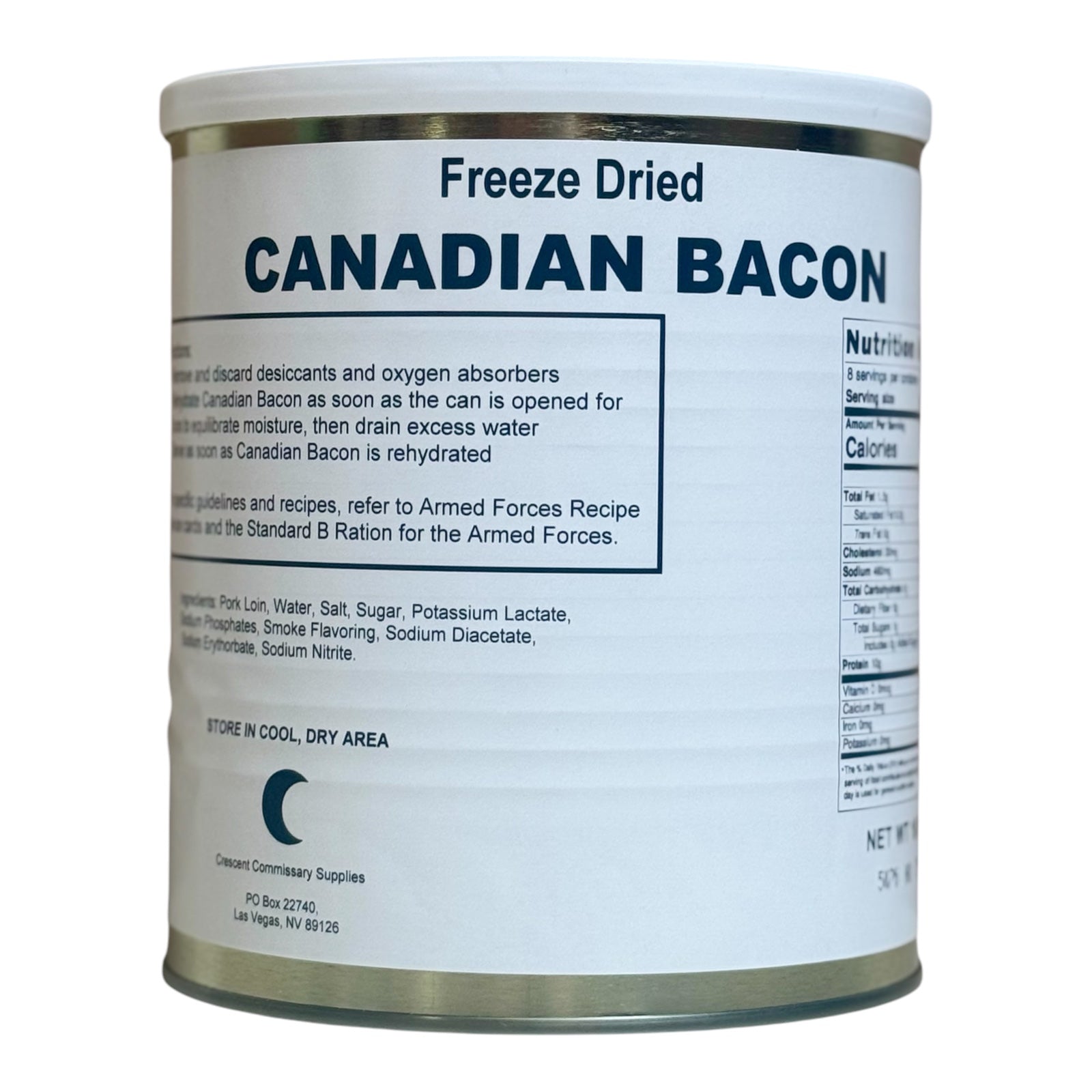 This Freeze Dried Canadian Bacon is an amazing disaster preparedness item. It is perfectly cured, tasty, and guaranteed to please with its flavor. All cans were sealed in an oxygen/moisture free environment.