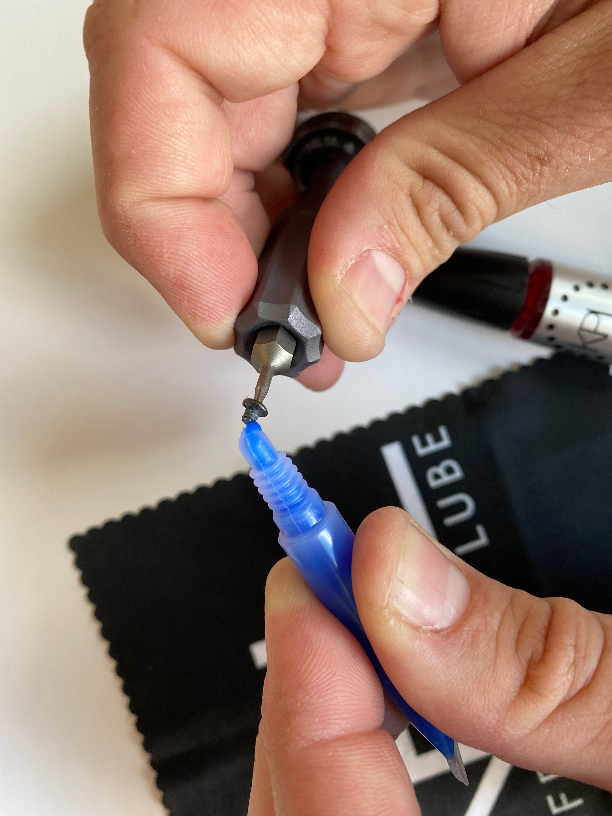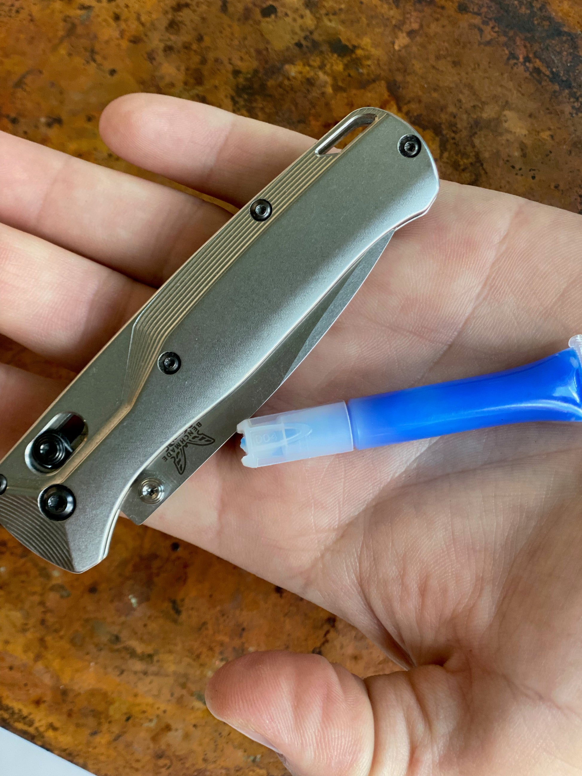Vibratite Blue Medium prevents screws from working loose under shock, vibration, movement, and incidental friction. Keep your pivot screws set to perfect tension and avoid losing fasteners on your pocketknife.